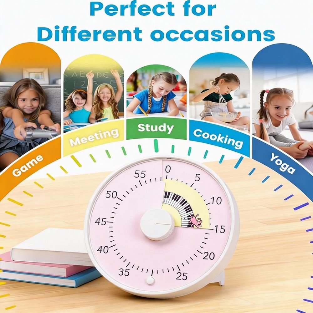 Temporizador Pomodoro de 8 pulgadas, 60 minutos, redondo, visual, de plástico ABS, con pilas AA, para cocina, estudio, niños, hogar y aula.