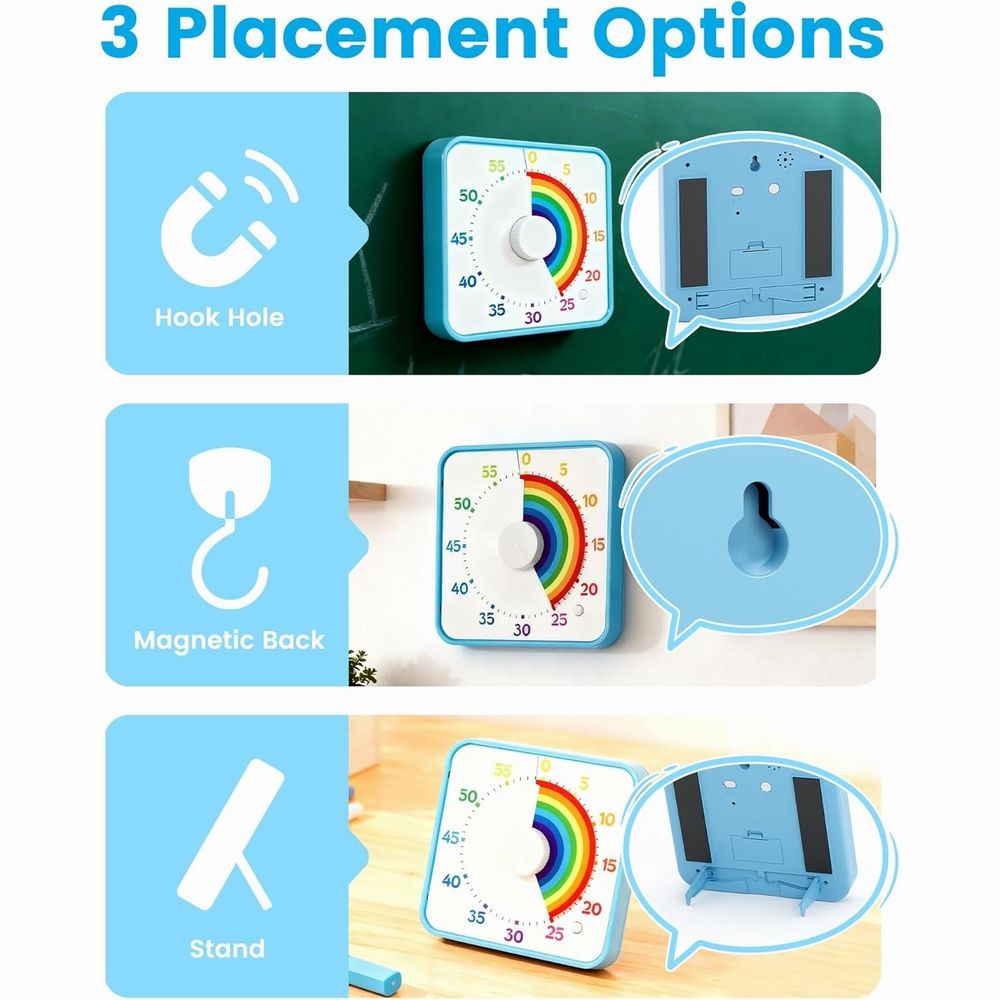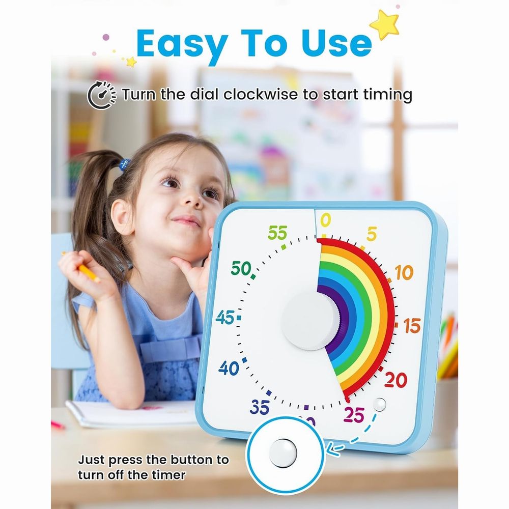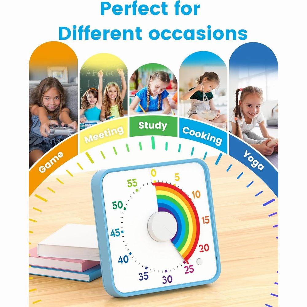 Temporizador Pomodoro cuadrado de 8 pulgadas y 60 minutos, con batería AA, de plástico ABS, visual, para cocinar, estudiar, niños, productividad, uso en el hogar y el aula.