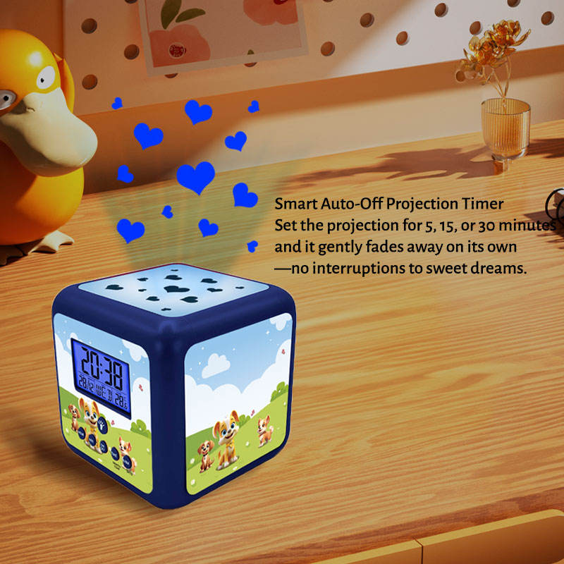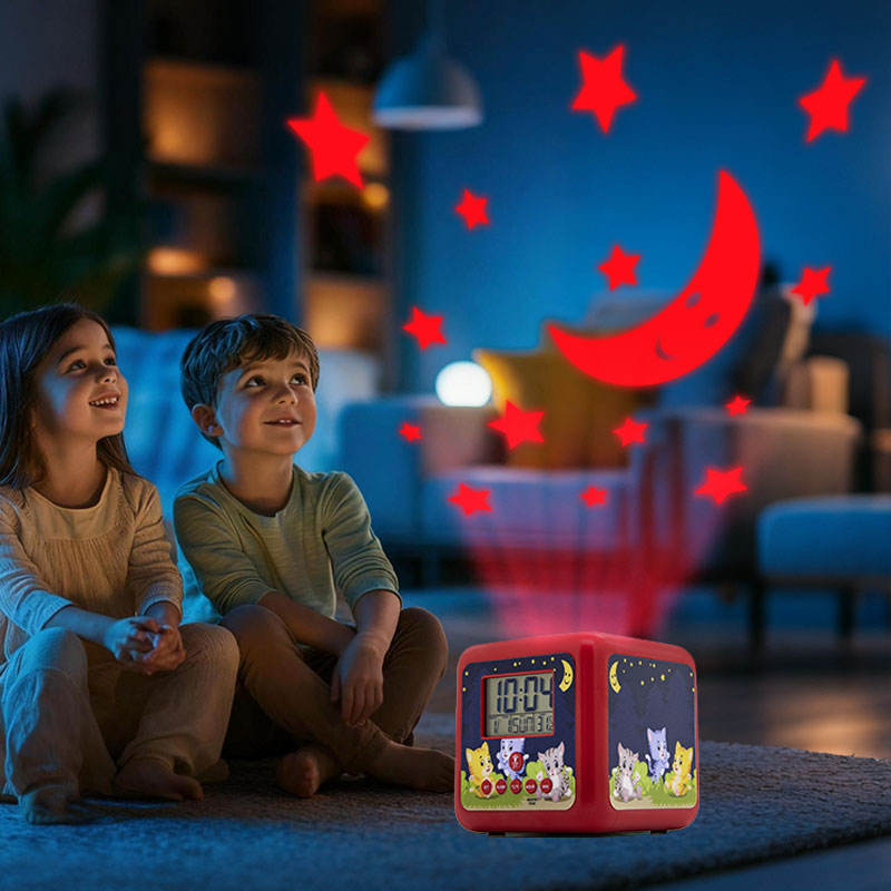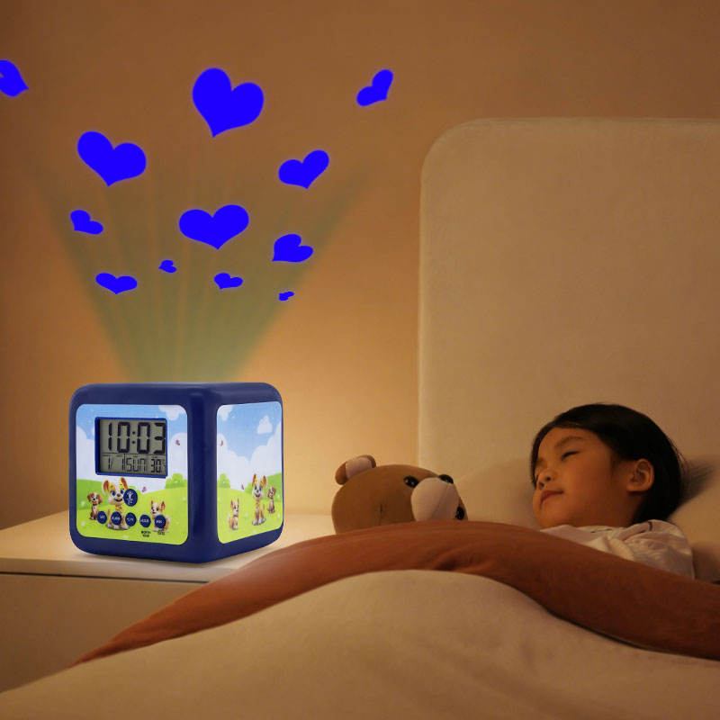 Diagrama personalizado Tendencia Niños Entrenador de sueño inteligente Plástico LCD Proyector de luz nocturna Escritorio Reloj despertador Temporizador Batería digital