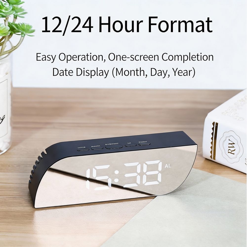 Reloj despertador digital cuadrado de escritorio con retroiluminación LED de plástico, carga USB, termómetro, pantalla, nuevo diseño, estilo espejo.