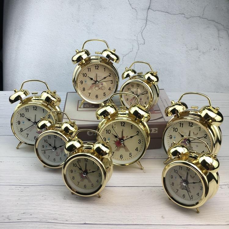 Metal Ringing Alarm Clock Large Bell Antique Gold Vintage Clock Face Double Ringing Silent Scanning Clock