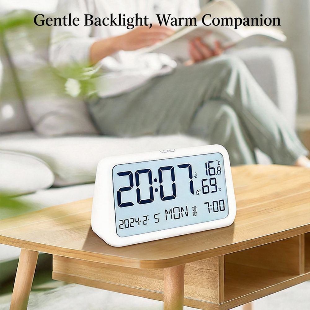 Reloj despertador de mesa LCD de plástico con retroiluminación, función de repetición, digital inteligente para dormitorio infantil