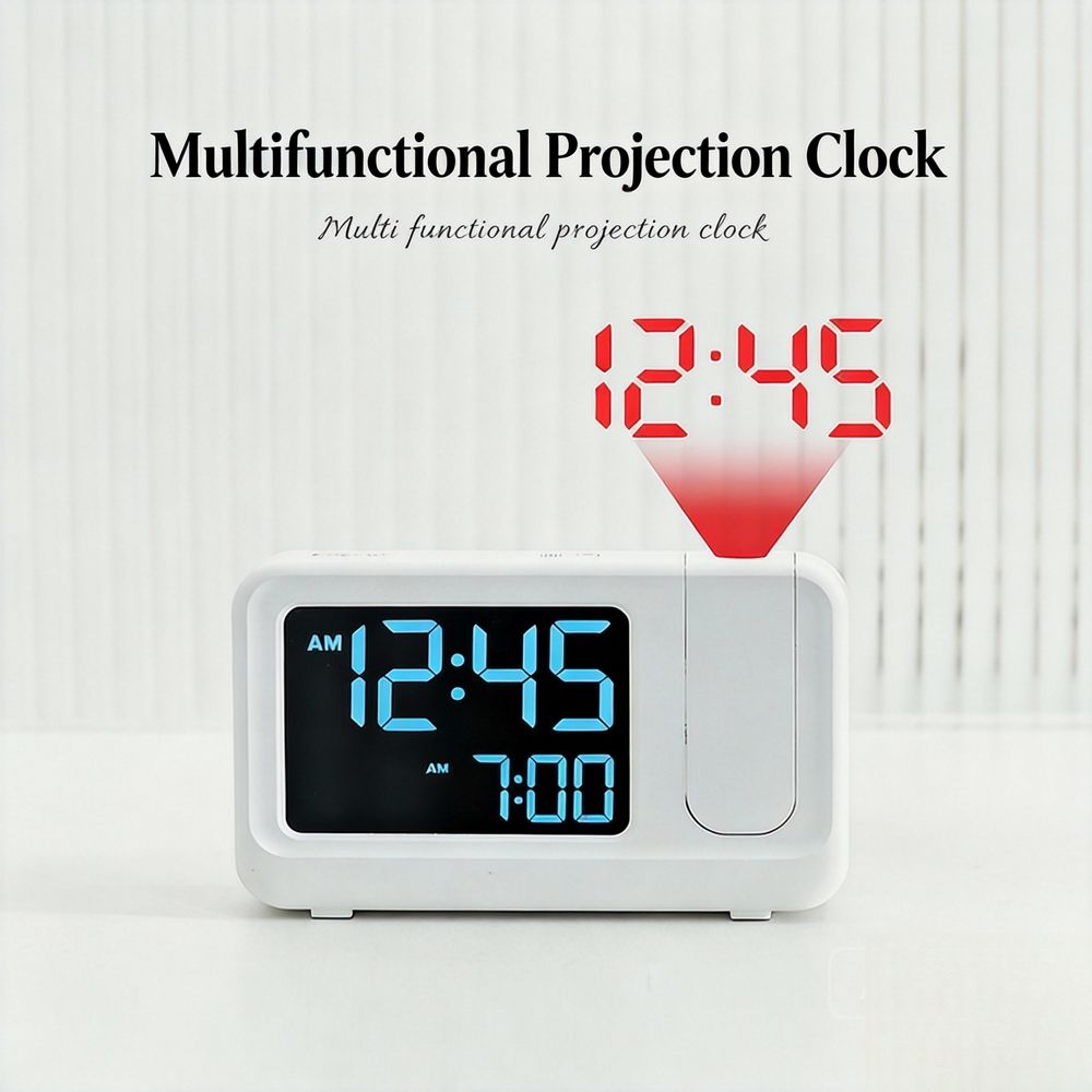 Modern Electronic Desk Alarm Clock with Digital Projection Snooze Backlight Calendars-Office & Bedroom Decor
