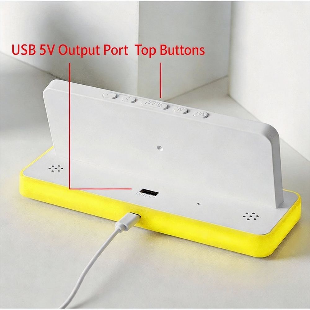 Reloj despertador digital LED más vendido con pantalla a color y control de sonido Tipo de pantalla Digital Número de modelo 2H725 Característica especial Calendarios Fuente de energía Carga USB Tamaño 16*6*2,5 cm Material ABS Cantidad mínima de pedido 500 piezas Logotipo y color Aceptar personalización Capacidad 35000 - 50000 cada mes