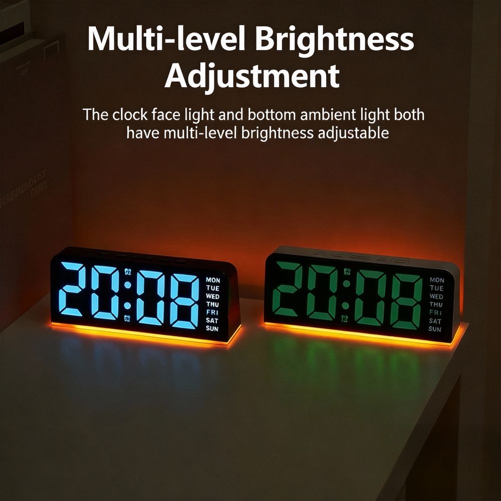 Modern LED Digital Alarm Clock Large Screen 2 Alarms Brightness Adjustment Week Date Display Night Light USB Powered Square Room
