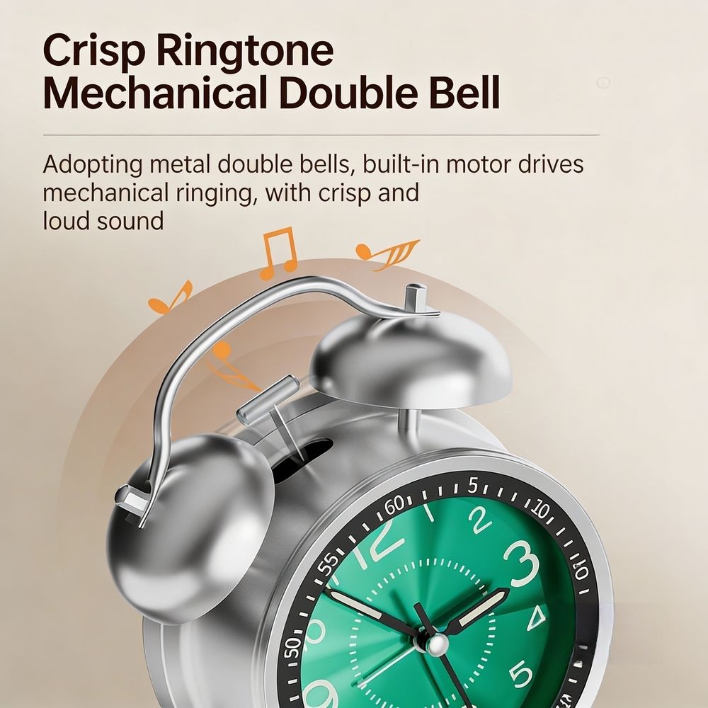 Reloj despertador analógico de cuarzo con sonido de metal moderno y lujoso para estudiantes, pequeño y creativo reloj de sobremesa para cocina y escritorio.