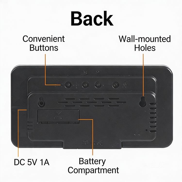 Reloj despertador digital de pared con luz LED, cuadrado, de plástico, moderno, de alta calidad, con fecha, semana y hora, puerto de carga USB.