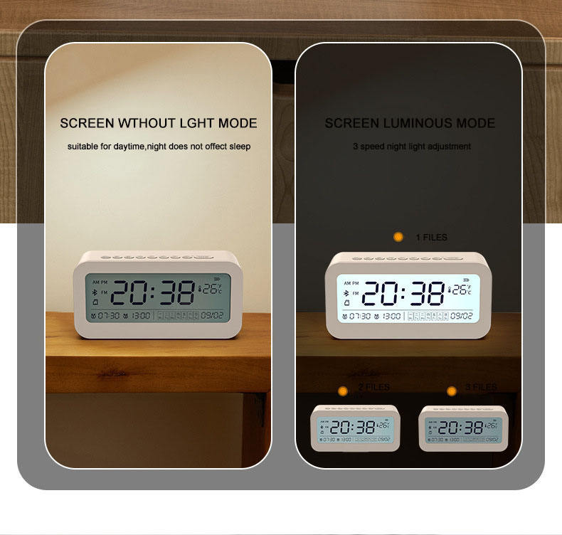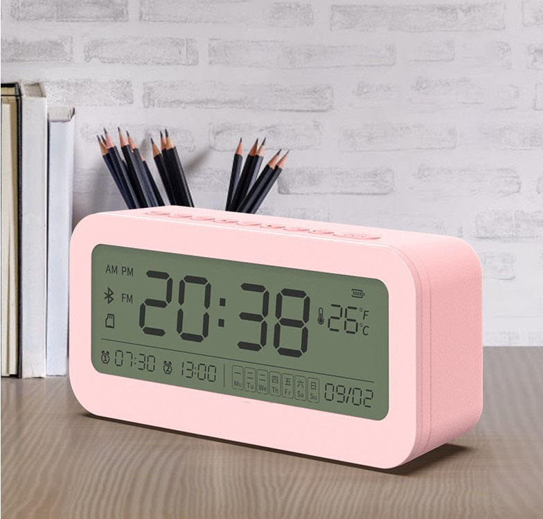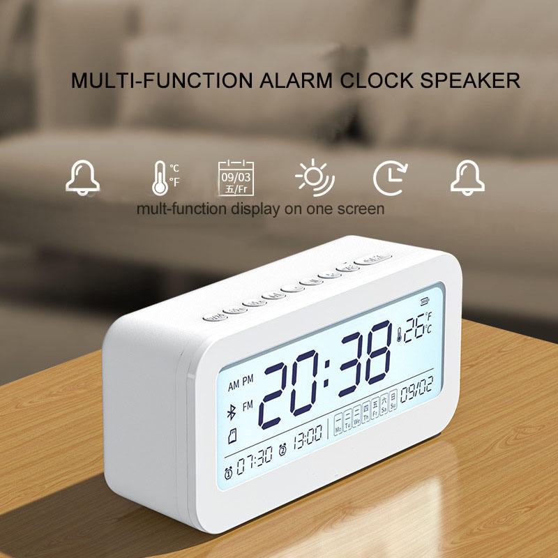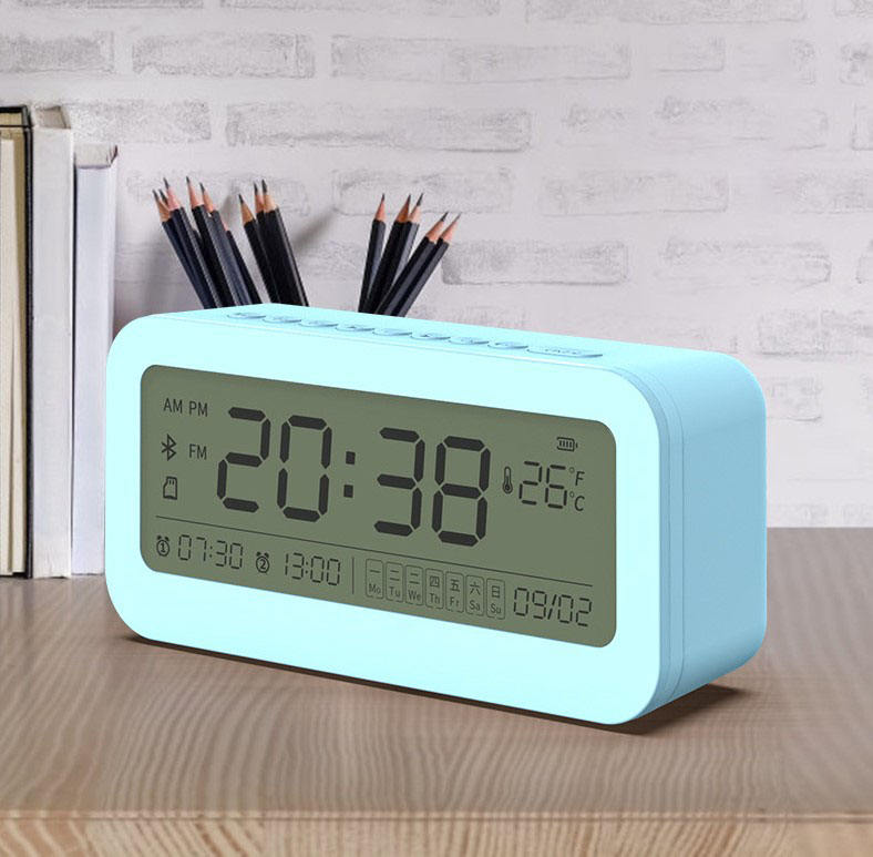 Reloj despertador digital de escritorio con pantalla LCD y altavoz Bluetooth multifunción con temperatura