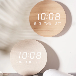 Nordic Style LED Wall Clock for Home Bedroom and Office Modern Mute Digital Clock with Wooden Material