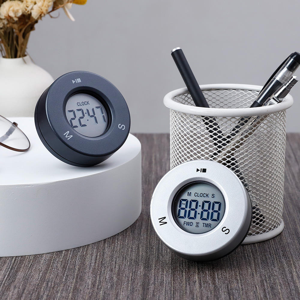 Temporizador de cocina electrónico digital pequeño redondo con función de alarma alimentado por pilas Temporizador de cocina de plástico tipo banquero