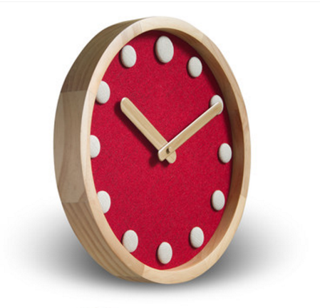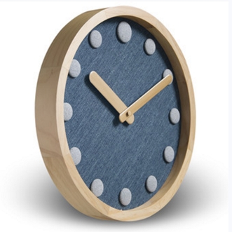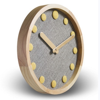 Unique Style Decorative Analogue Type Wooden Wall Clock with Fabric Button