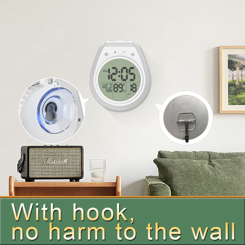 Waterproof Shower Clock Washroom Timer Suction Bathroom Wall Hygrometer Thermometer Smart Digital Alarm Clock